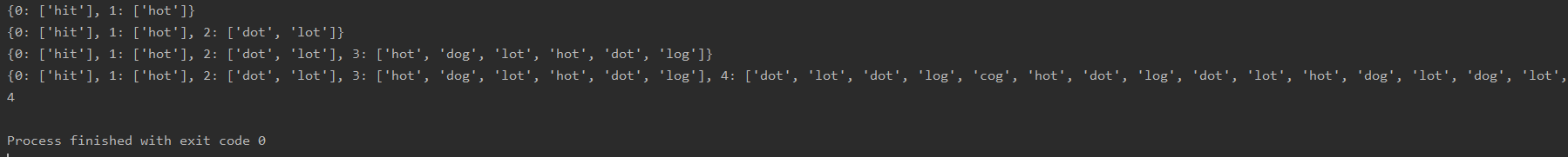 | hit | cog | [hot, dot, dog, lot, log] | 0 |
