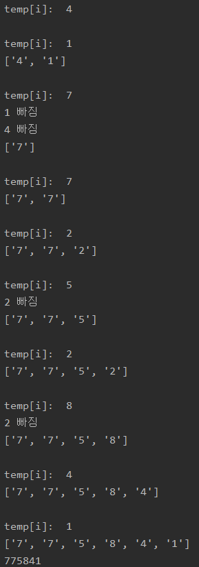 - temp의 원소들을 하나씩 stack에 집어 넣는다.