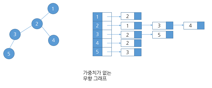가중치가 있을 경우, 연결된 노드와 가중치를 묶어서 저장함으로써 정점간의 링크의 가중치를 표현한다.